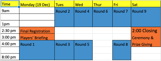 | 6:30 pm | Players' Briefing | |||||